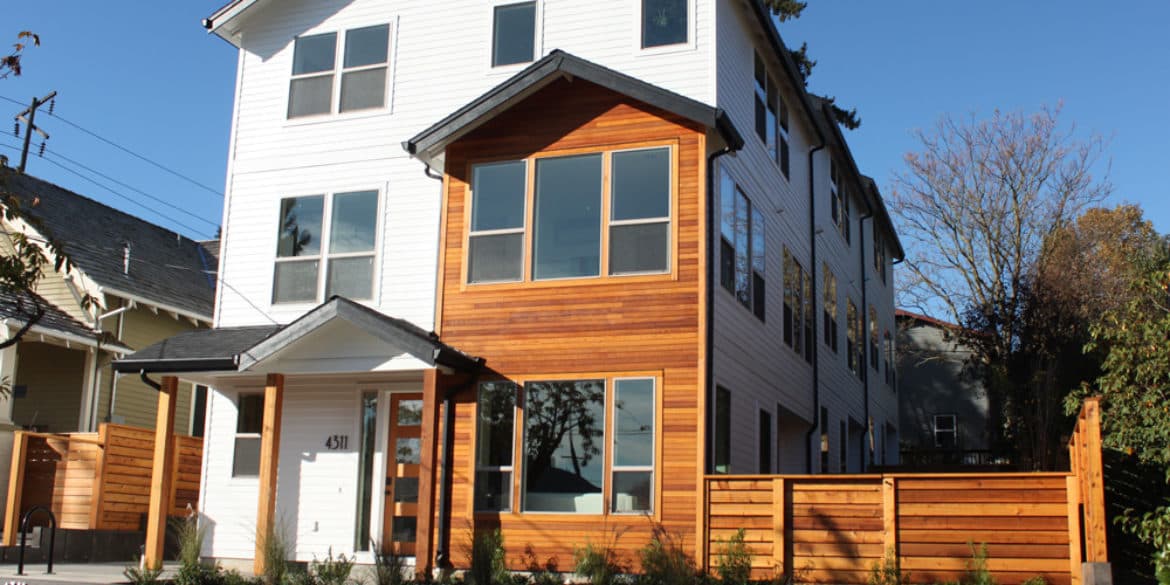 New construction of traditional style home with modern colors and clean lines.