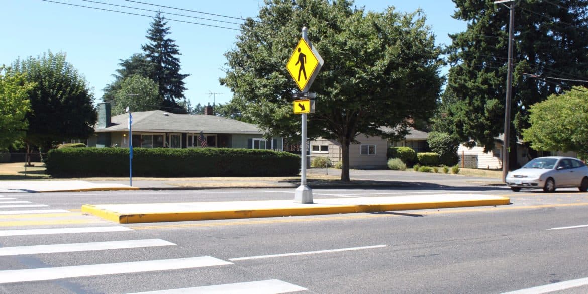 As a subconsultant, Emerio developed two separate PS&E design packages from PBOT’s preliminary engineering plans. The objective along multiple sections of these heavily traveled commercial corridors was to engineer pedestrian safety improvements and to improve accessibility to transit by providing pedestrian crossings with ADA ramps and sidewalk infill. Along the SE/NE 122nd Avenue corridor, Emerio was responsible for grading, paving, striping, and signing for two Rectangular Rapid Flash Beacon (RRFB) crossings and one HAWK crossing (High Intensity Activated Crosswalk Beacon). Along SE Foster Road, a new sidewalk corridor was added, closing the gap in the existing sidewalk to improve accessibility. Stormwater improvements included catch basins and storm pipes resulting from revised geometry of the curb and gutter.